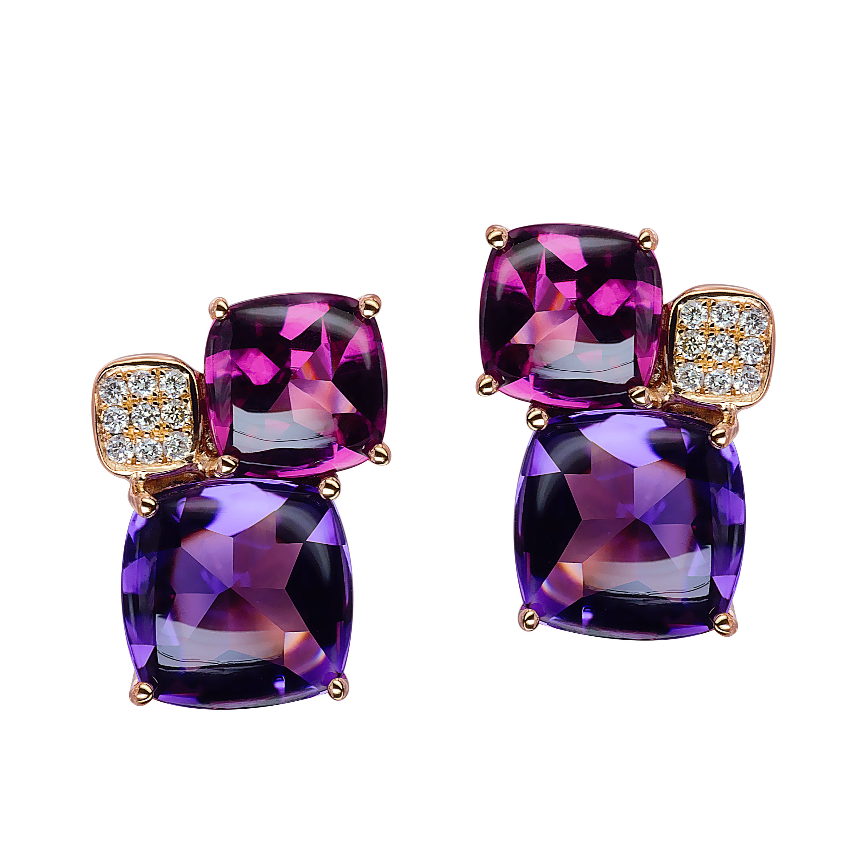 A partir de 3 800€Boucles d'oreilles Pavés de Paris - Améthyste, rhodolite, diamantsE461BOr rose 18kAméthyste, Rhodolite, Diamants.