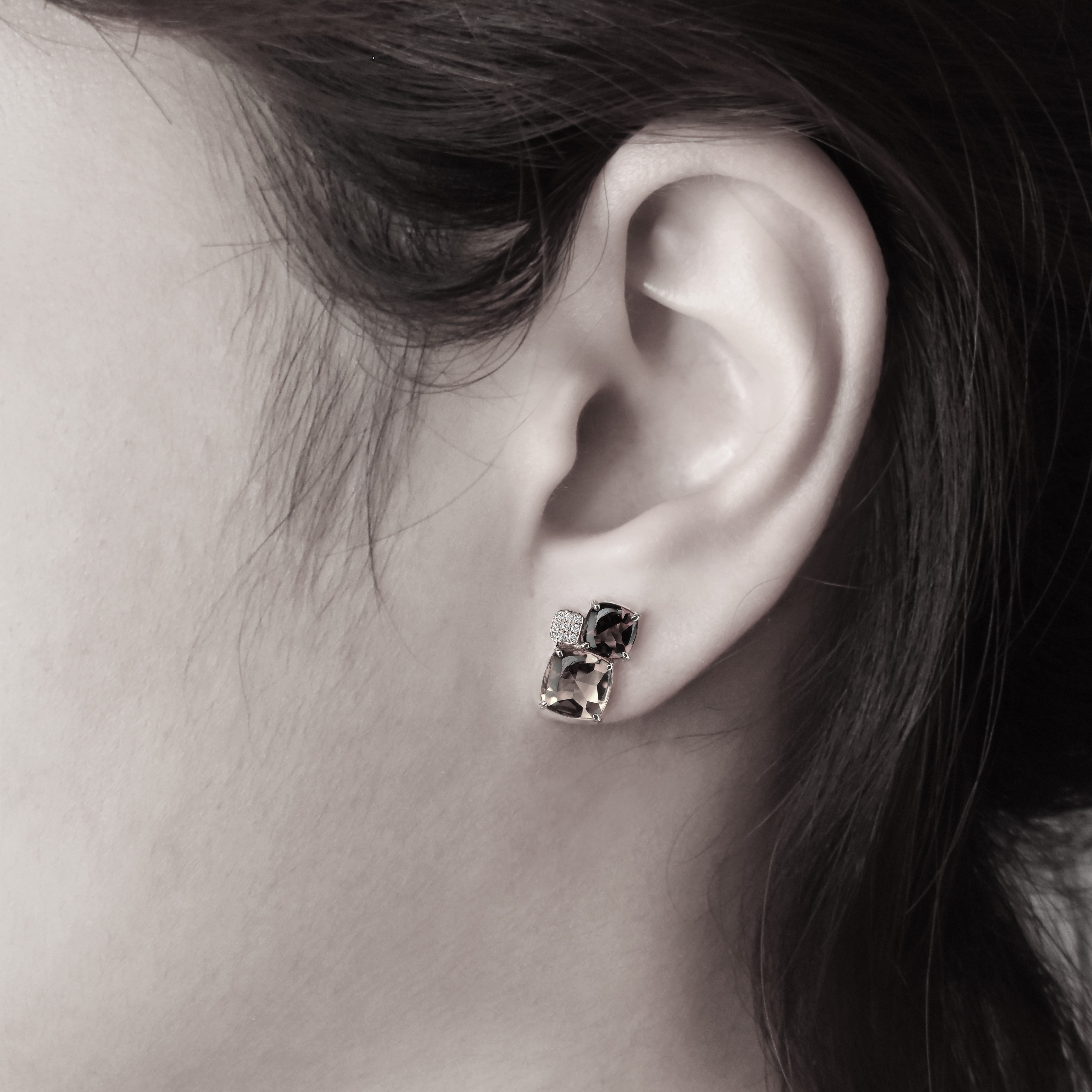 A partir de 2 950€Boucles d'oreilles Pavés de Paris - Citrine Or Rose 18kRef : E1547CMonture : Or Rose 18kPierres :Citrines, Quartz fumé, Diamants.