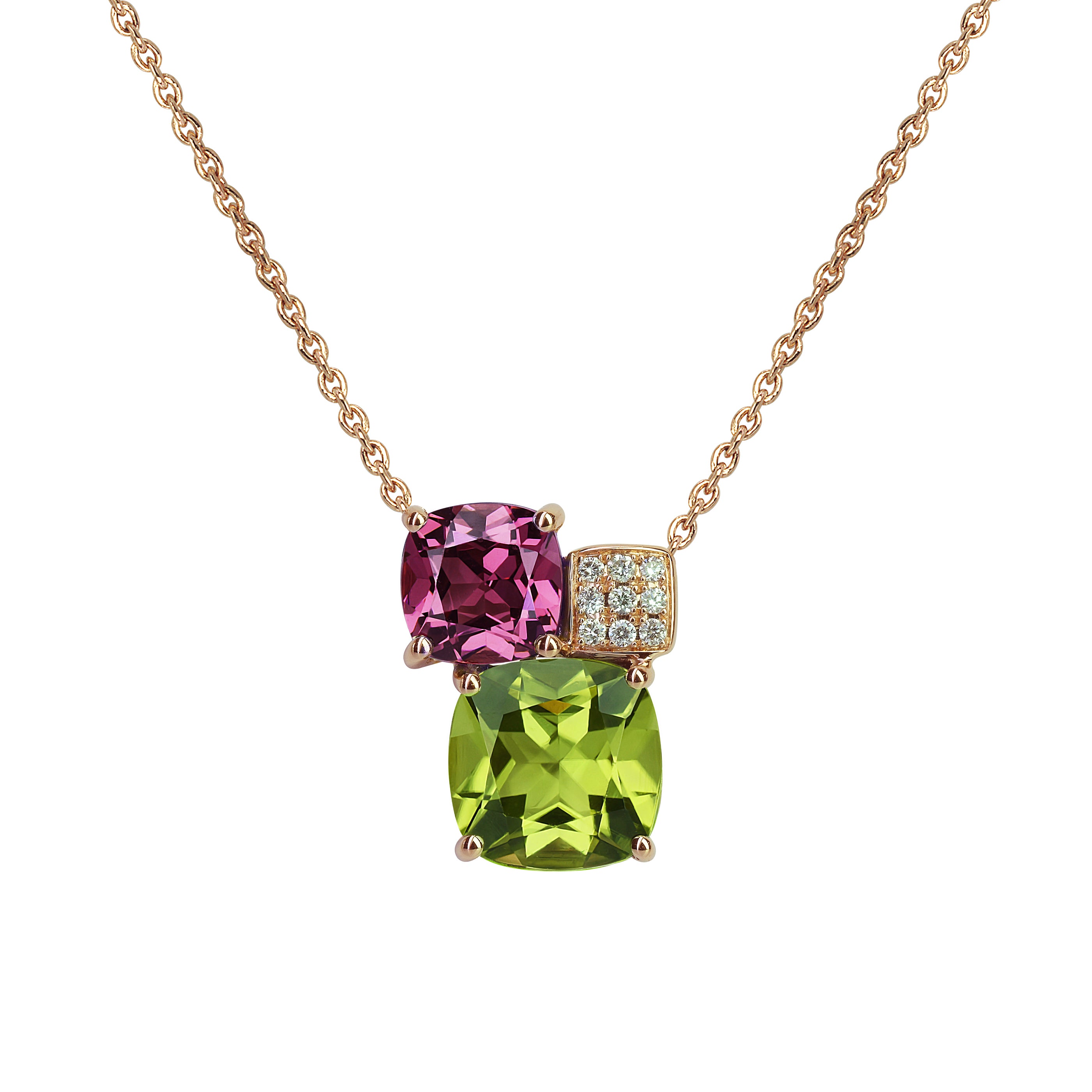 Collier Pavés de Paris -Péridot , Rhodolite, DiamantRef : N416Chaîne : Or Rose 18kPierres :