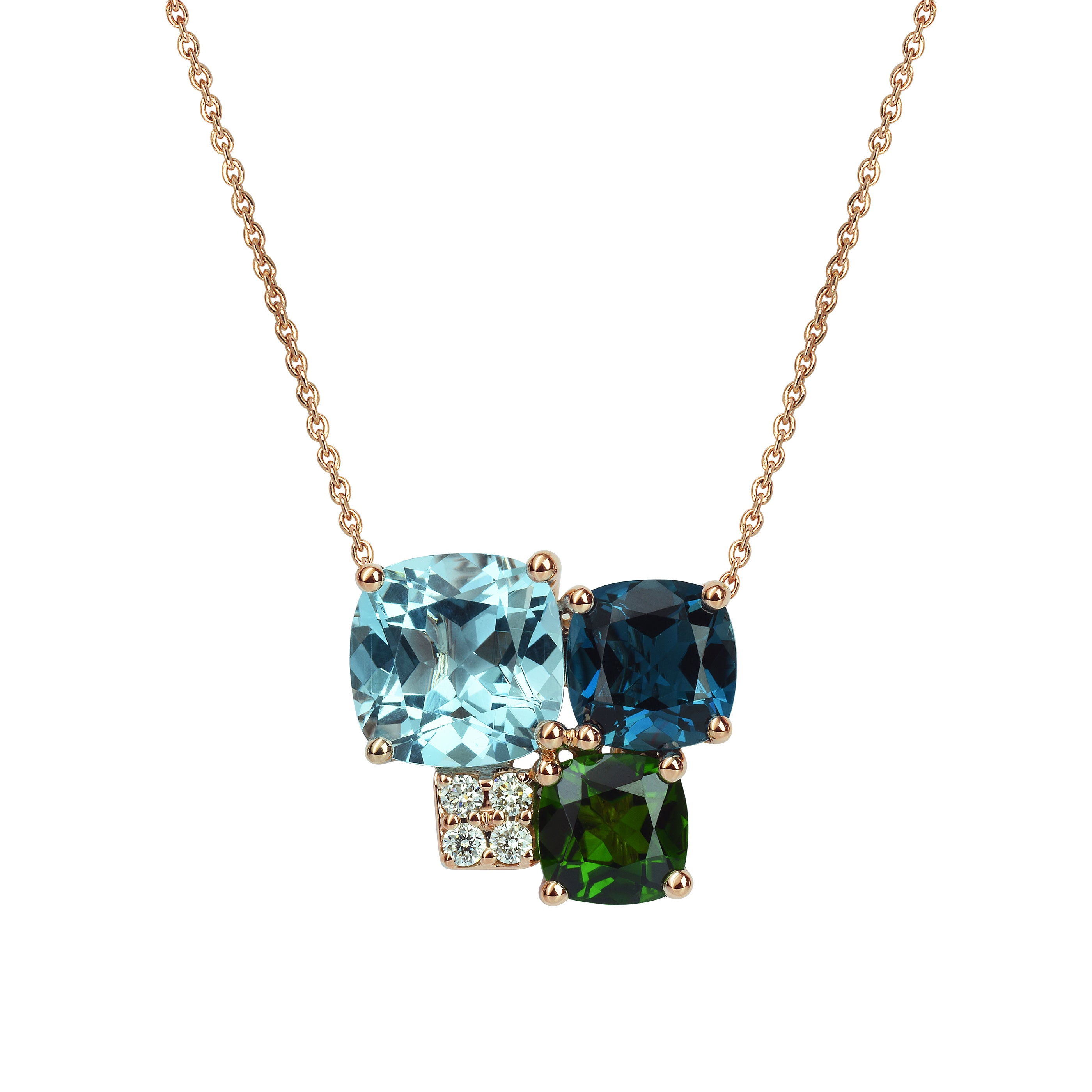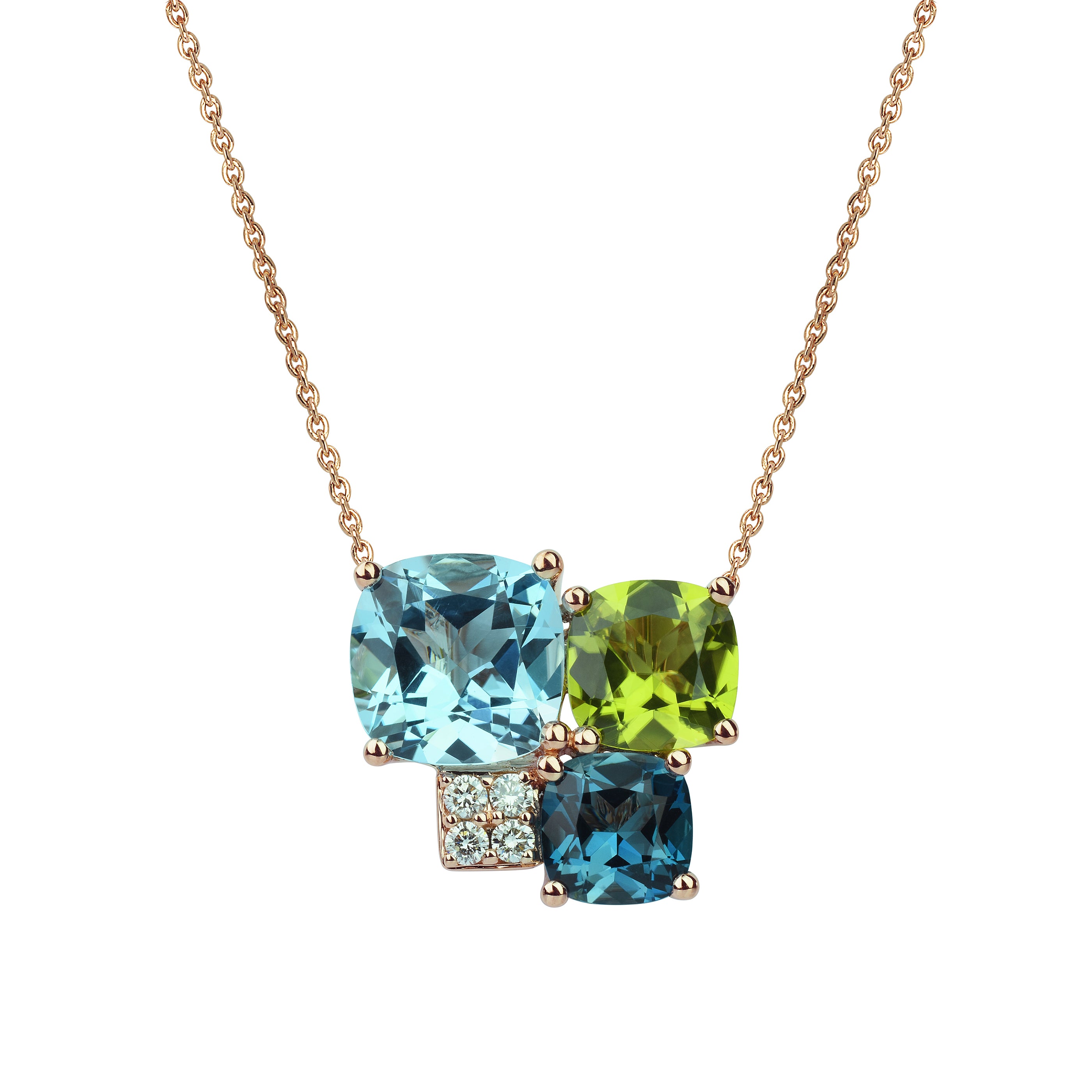 Collier Pavés de Paris - Topaze bleu, Péridot, Topaze bleu London, DiamantRef : N502Chaîne : Or Rose 18kPierres :