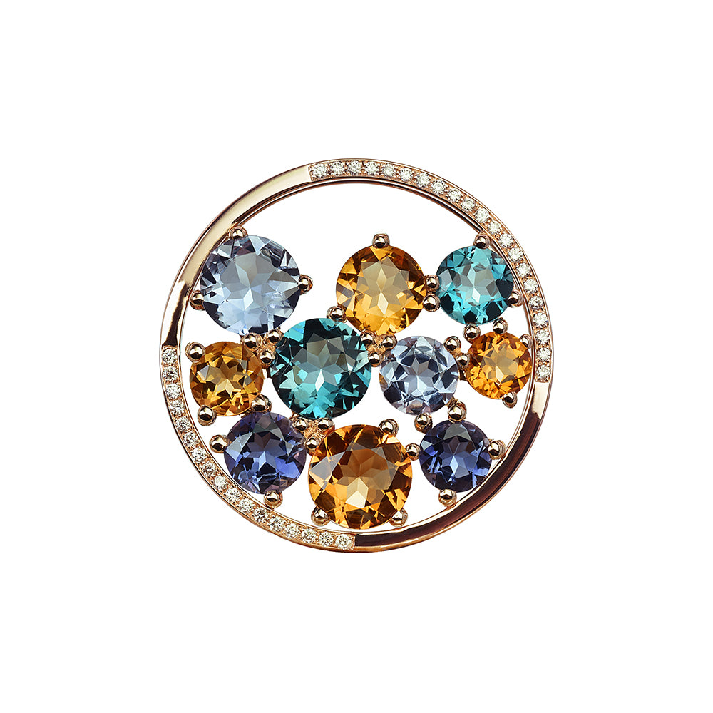 Iolites, Topaze bleu London, Citrines, Diamants.
