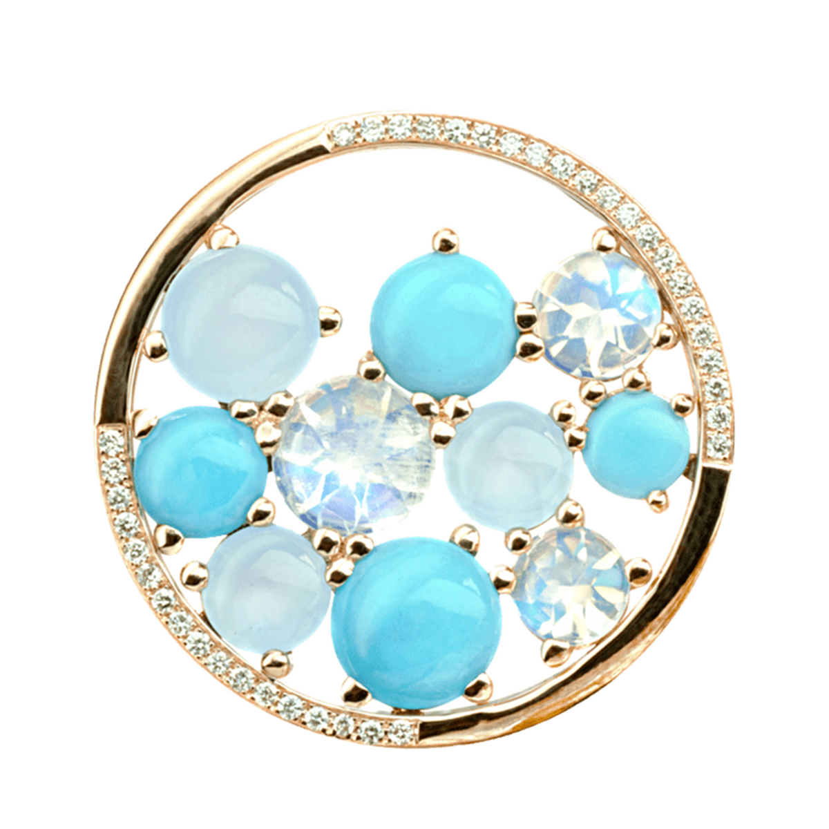 Turquoises, Pierre de Lune, Aigue-Marine "Milky", Diamants.