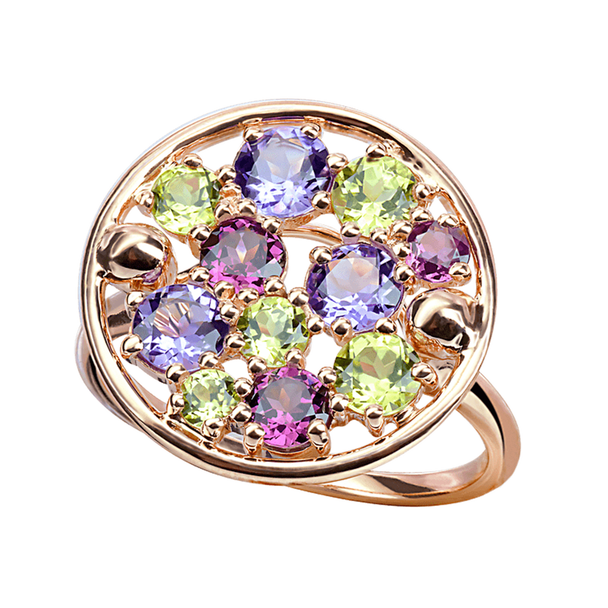 Bague Sac de Billes - Or Rose 18kRef : R1530Monture : Or Rose 18kPierres :Péridots, Améthystes, Rhodolites.